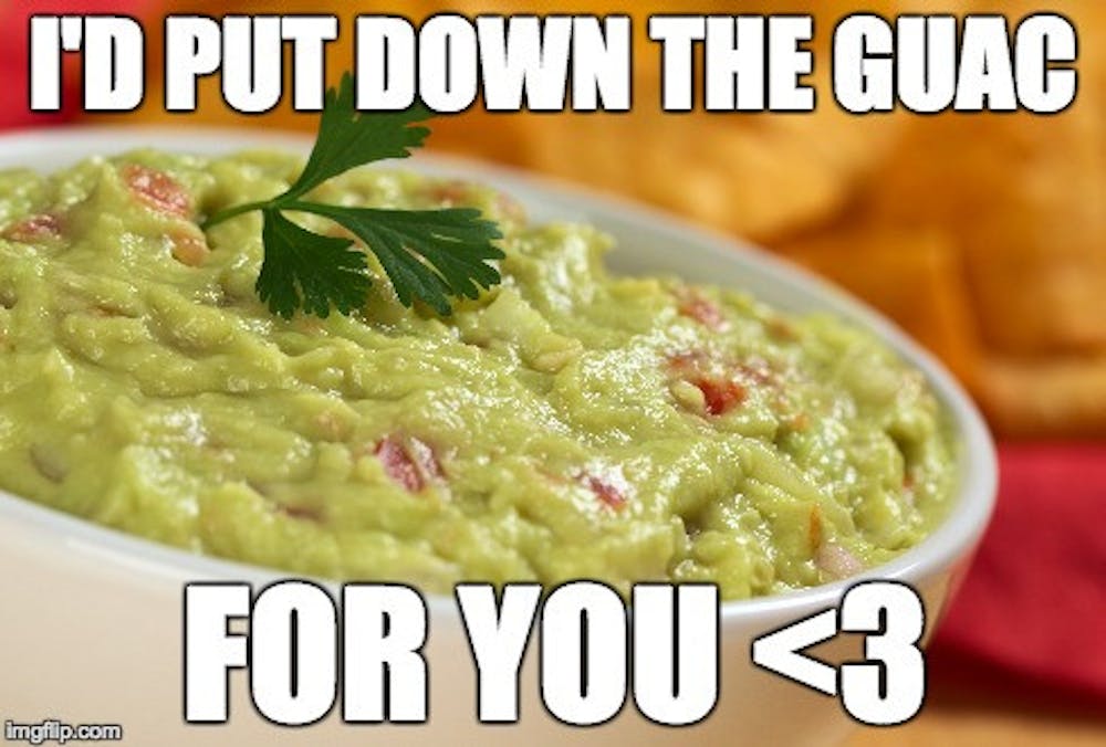 You can't commit to a meal if it's only average. You could get bored and think about pizza or McDonald's or Chinese. But the guac makes it pretty difficult to pass up. The guac makes you stay. It gives you security in your decision. It lets you know that you made a good choice.